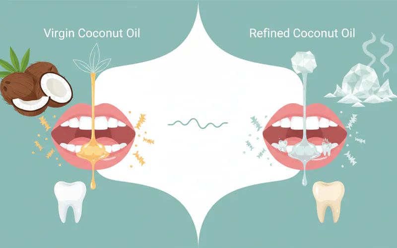 ![A visually appealing infographic comparing Virgin Coconut Oil vs. Refined Coconut Oil for oil pulling(/holistic-dentistry/oil-pulling-saved-my-teeth-complete-guide), highlighting key differences in processing, nutrient content (especially lauric acid), taste, and cost. Include small icons representing cold-pressed, organic, chemicals, etc.]